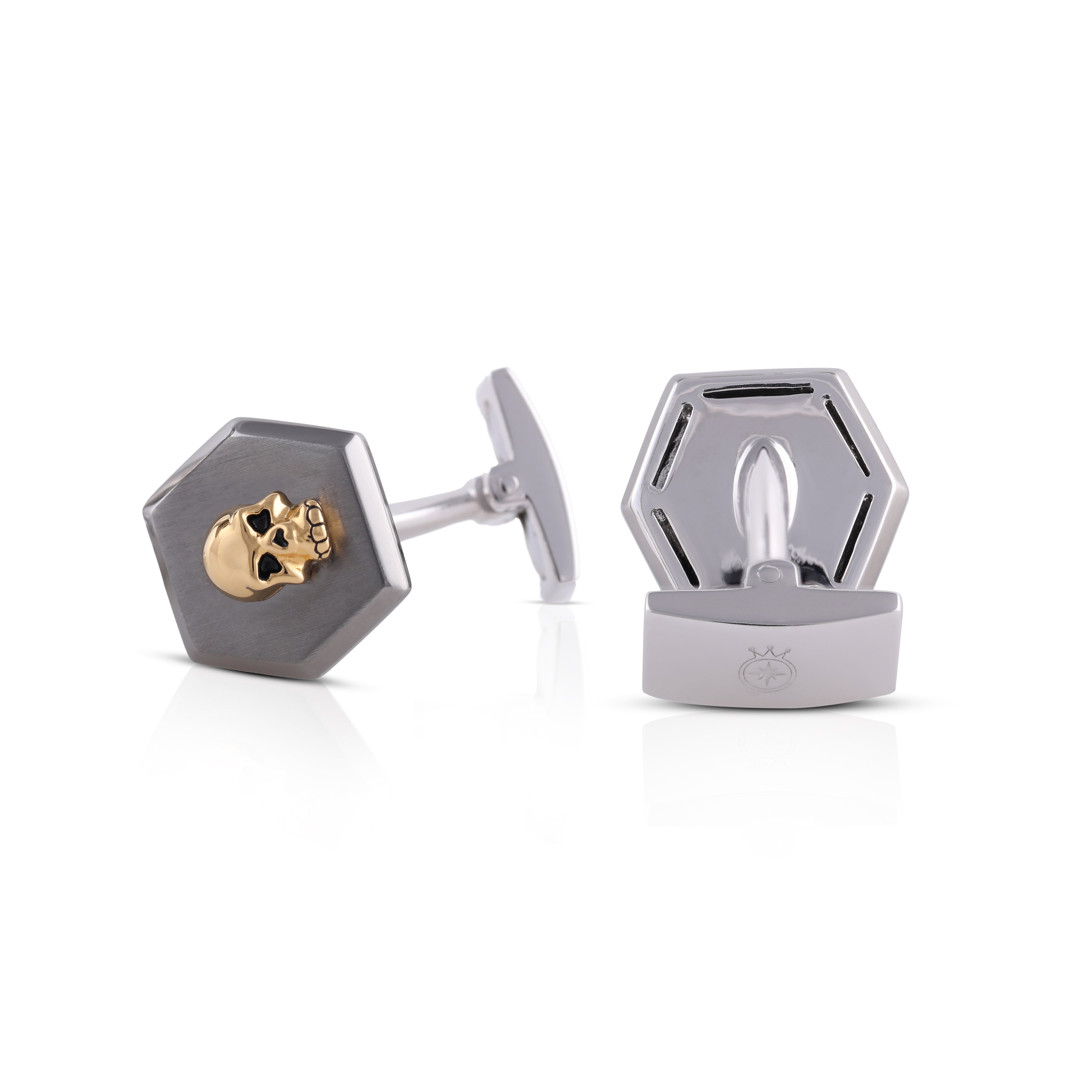 Biker Skull Silver Cufflinks (Gold)