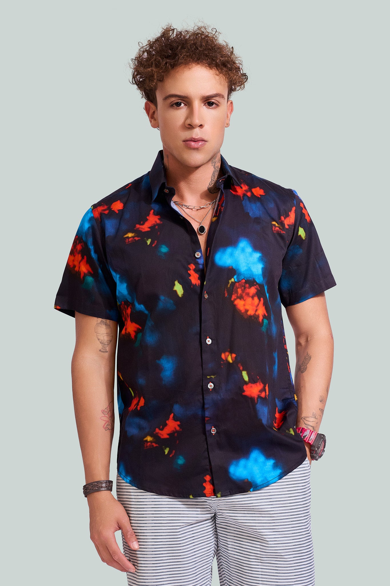 Discover the NM Soft Blend Print Shirt for men, crafted from high-quality Giza cotton for supreme comfort and durability. Featuring a spread collar, button-up front, and regular fit, it offers both style and ease. Perfect for any occasion, its versatile design ensures a sophisticated look effortlessly. Choose from a range of captivating prints to express your individuality with timeless elegance.